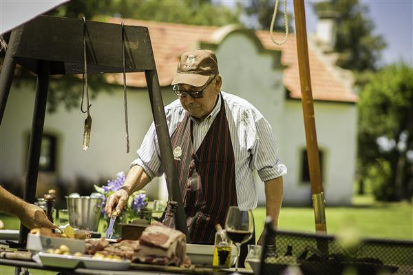 Grill master in action